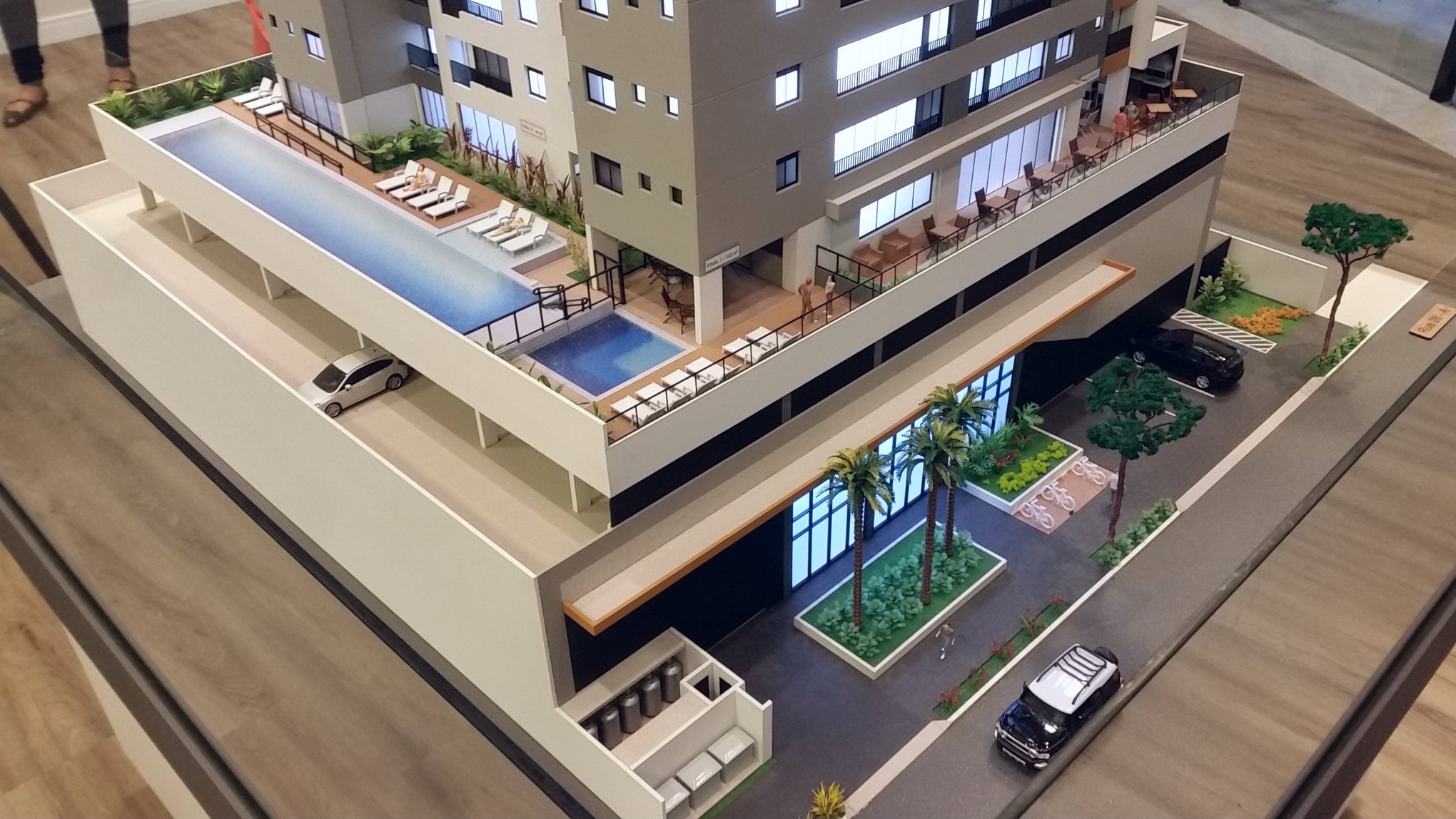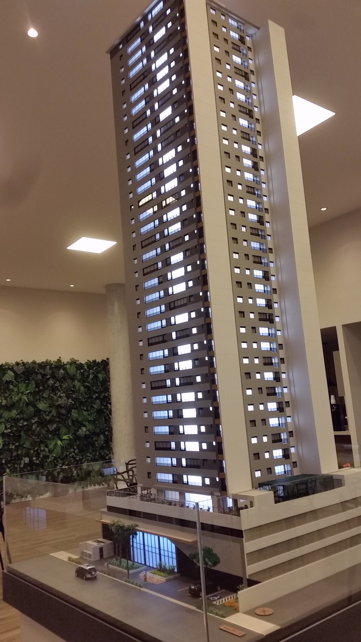 A high-rise residential tower model with detailed façade, balconies, and lighting effects. Ideal for real estate presentations.